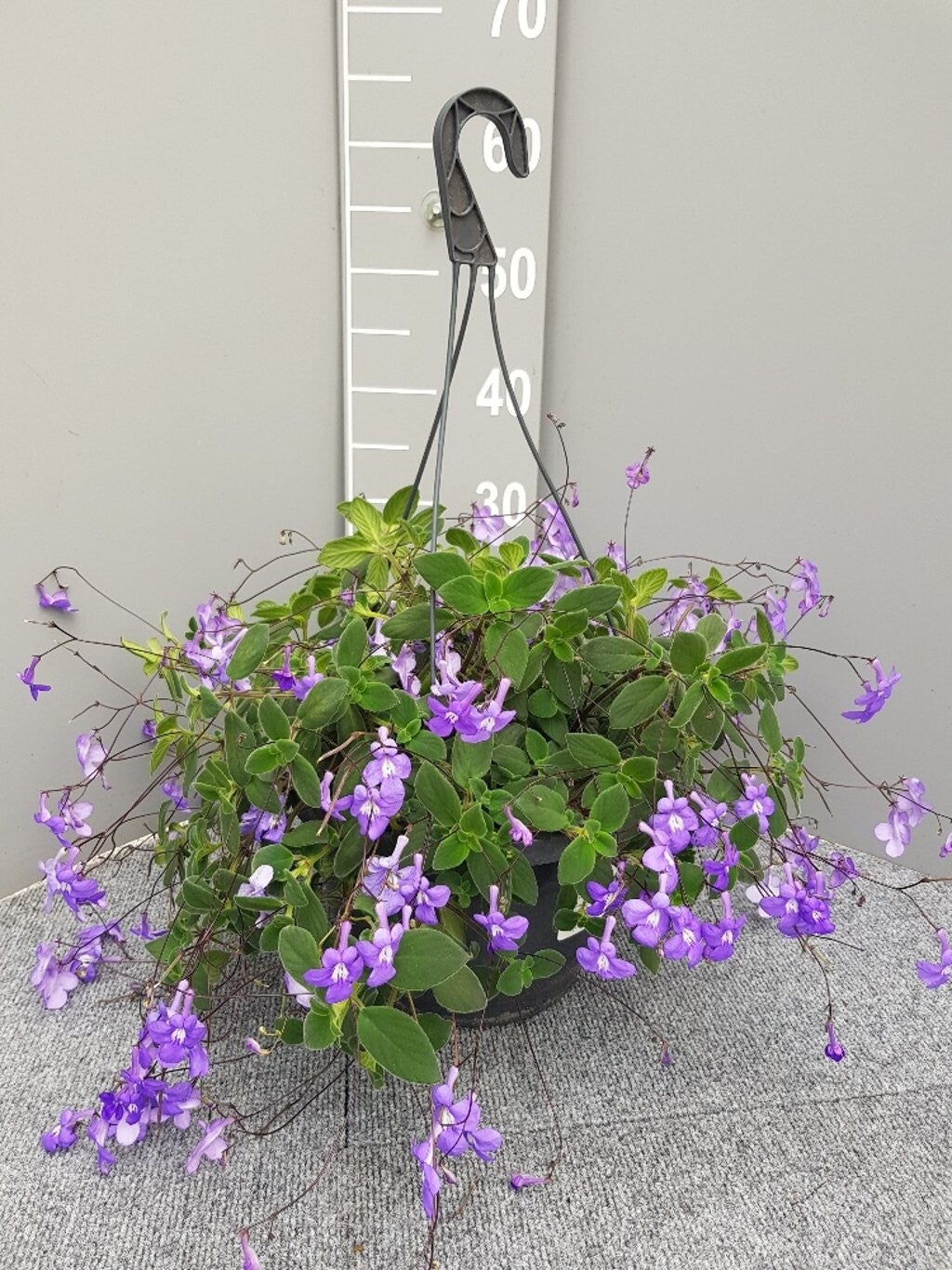 Rijkbloeiende hangplant met zachtgroen blad en vele kleine paarsblauwe bloemen. De overhangende scheuten maken deze plant ideaal voor hangpotten op balkon of terras